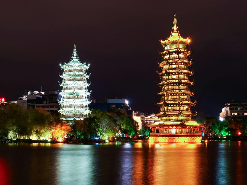 Journey through Yangshuo’s serene countryside and explore Maling Drum Village for a taste of Dong ethnic culture. Visit iconic landmarks like Sun and Moon Pagodas, Xiangshan Scenic Area, and Ancient South Gate. Stroll along East-West Street and enjoy Guilin’s famous local snacks — an unforgettable mix of nature, culture, and cuisine.
